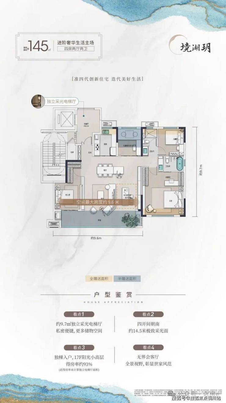 该项目建面约99平的小户型,实得套内面积可达约92平,实得面积相当于三代住宅建面约120平的户型