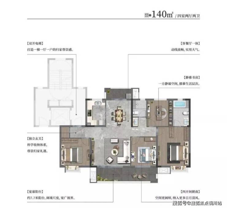 梧桐公馆深刻洞悉现代人居需求,以前瞻的设计理念,精研空间尺度,尽显大宅气度。140㎡户型方正,大面宽采光,全明通透,尽享舒适生活。深度契合高阶人群的需求,诠释宽境居所的美好,演绎优雅非凡的人生。