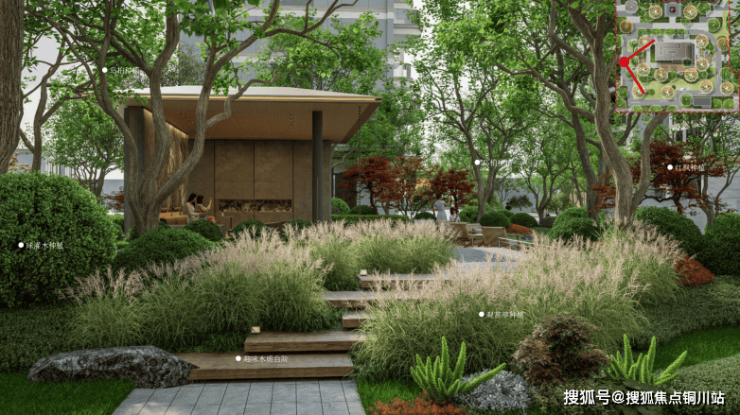 园内打造了约1800平方米的台地花园“登云阙”和坡地顶端的“云亭”会客厅,这种惬意舒适的园林体系将园林生活的浪漫、层次与酒店归家动线的尊崇、秩序融为一体,是区域内非常罕见的创新景观动线。
