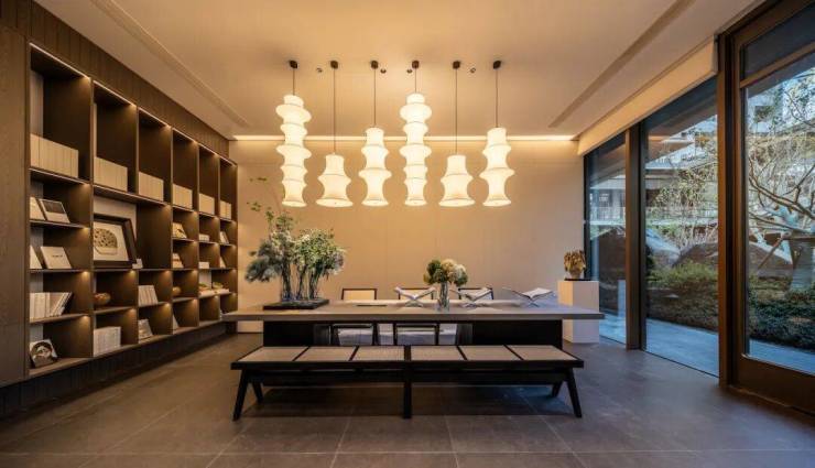 传统会所常被边缘化。承宁府融合安缦酒店中式禅意和现代奢华的空间功能打造手法,把恒温泳池、私宴厅、瑜珈空间、健身房等高阶配套,结合从五代到宋代时期的十二副名画汲取的设计灵感,以 “ 一府十二卷 ” 的空间形制深植社区心脏。