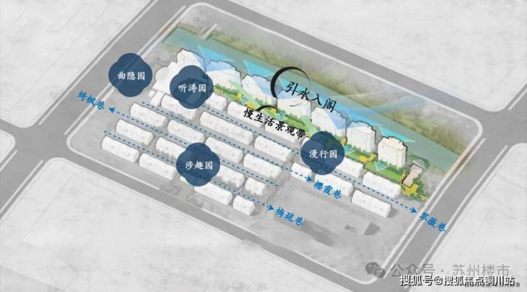 根据《园冶》中“四时之景不同,四时之乐亦不同”的造园理念,通过春樱(樱霞巷)、夏薇(翠薇巷)、秋枫(绮枫巷)、冬梅(梅疏巷)为四巷,打造四时花木,水景交错的慢生活景观带。