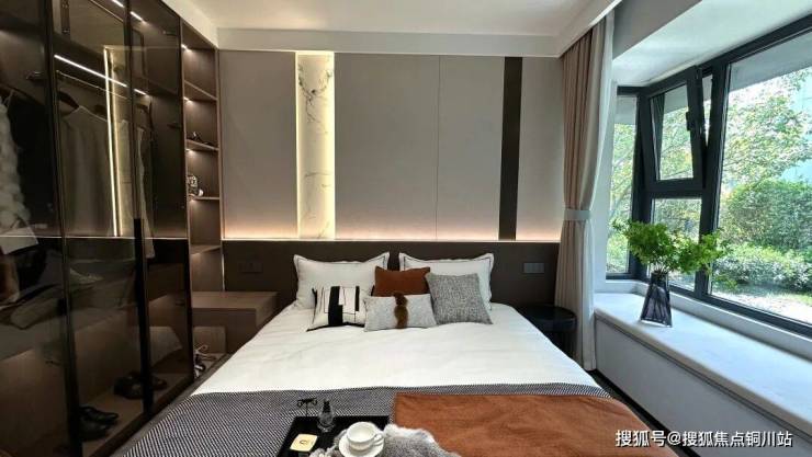 套房式主卧是改善户型的核心配置,建面约115㎡户型在此基础上做足价值延伸。270° 观景飘窗采用转角设计,拓宽景观视野,增加可利用空间,可打造观景休憩区、阅读角等多元功能区,实现“拓展面积的实用化”。