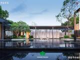 视觉的焦点是一场精心编排的东方叙事:中央镜面水景中,涌泉不息,其潺潺声息宛如一首欢迎曲;水中静立的一株日本冬青,以生命的绿意与稳定的形态,与水景构成一幅“动静相宜”的写意画。