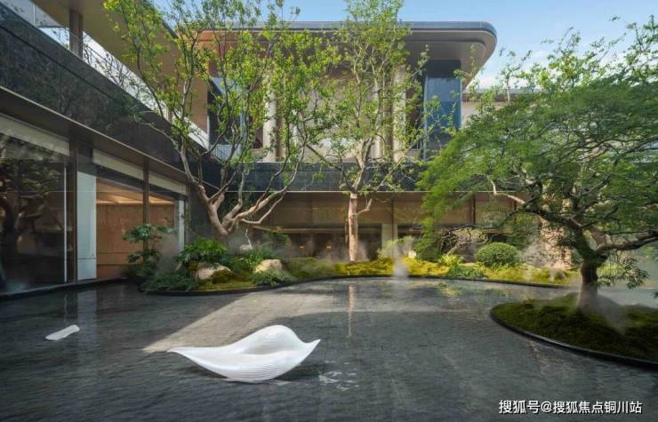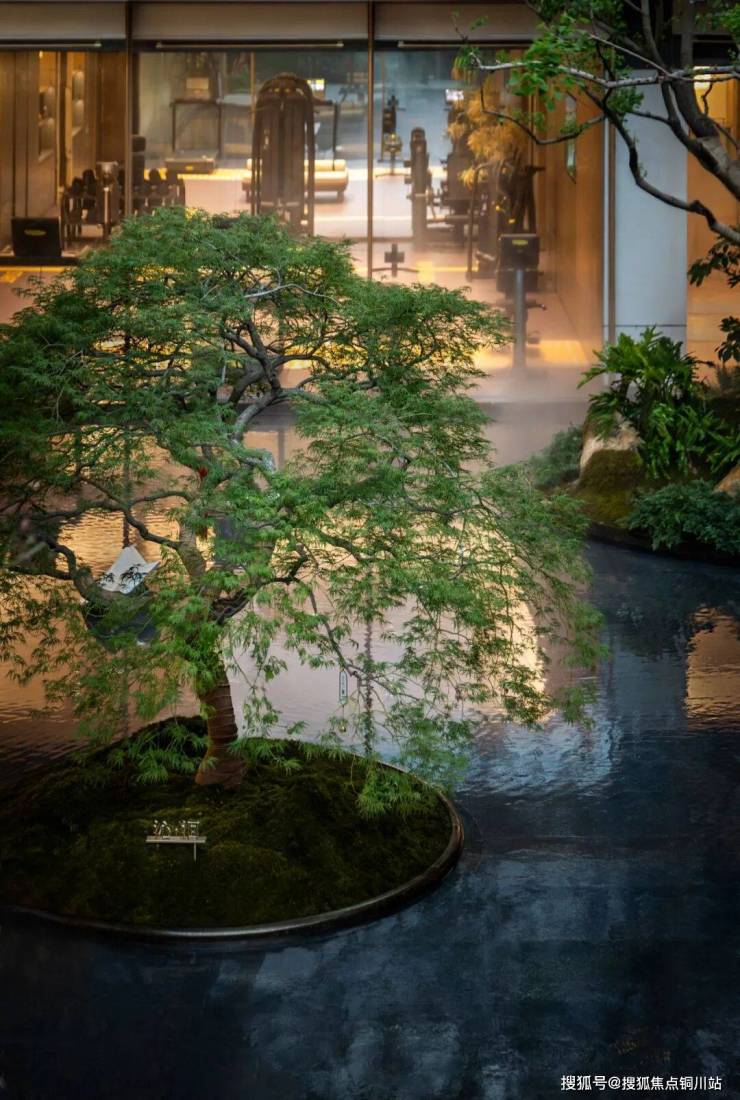 透过下沉庭院景观将绿意沁入地下会所室内空间,书吧、瑜伽室、健身房、游泳池皆因四时变幻而晕染上绝佳景色。