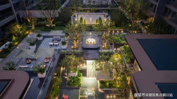 飞瀑如一练素錦,成为视觉焦点,串联地上与地下空间。而4颗丛生大乌桕矗立四方,自然界定庭院边界,又营造出私密氛围。拾级而下,阶梯式绿化、斑驳崖壁、镜面叠水树池次第展开。羽毛枫、茶梅、杜鹃葳蕤舒展,汀步、卡座相映成趣,构成一幅诗意的立体山水画。