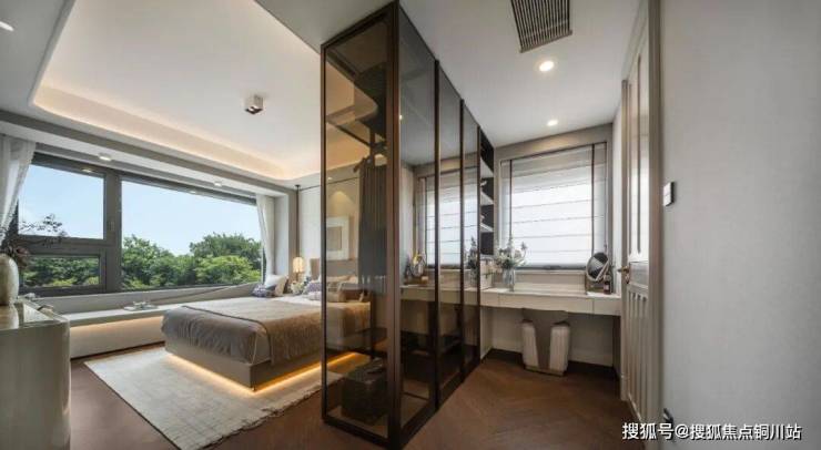 而在洋房的立面设计上,则取百合花优雅、高贵之意,通过现代材质与工艺,将之转化为建筑的轻盈与柔美。洋房外立面卸下厚重的墙体枷锁,采用大面积三玻两腔Low-E玻璃幕墙,四面铝板辅以超纤细金属线条勾勒,以极致的窗墙比,呈现出现代简约气质与精致细节,塑造多重空间层次。局部屋顶的细微变化及精巧的构件搭配,增加肌理质感的同时强调立面的节奏与韵律。晴日里,天光云影徘徊,茂叶嘉树摇曳,更显纯净自然,自由轻盈。