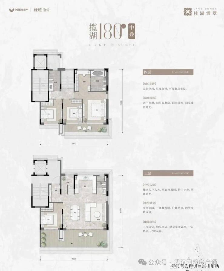 •极致视野景观: 约12米以上的总居住高度,拥有叠拼区最佳观湖视角,实现“花园+湖景”的双重享受。