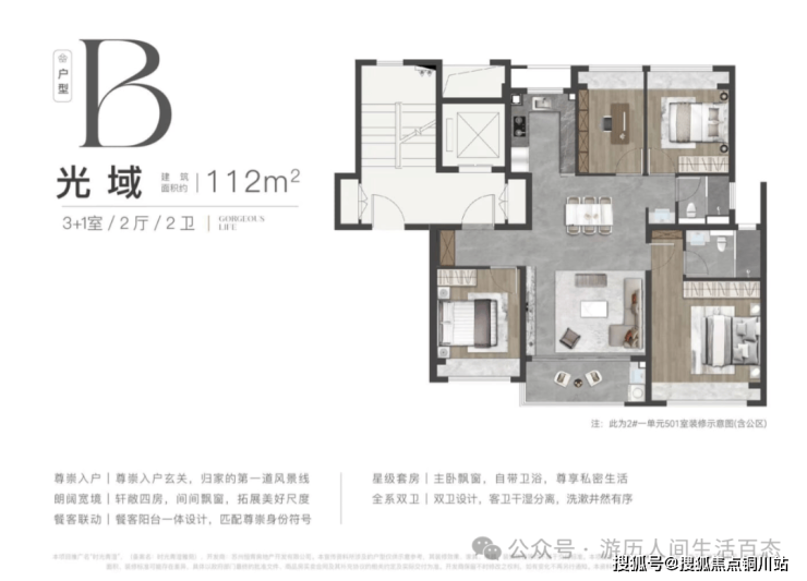 ✅ 面积段:约90/112/128㎡三档,全部一梯两户、精装交付