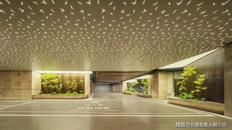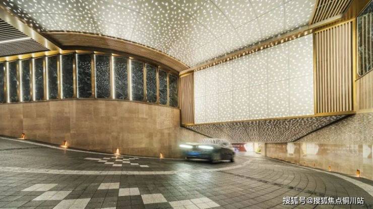 车道顶采用格栅与星空顶的虚实结合设计," 星空 " 一直延伸至地库内,搭配灯光渲染,堪比五星级酒店,图片效果远不及肉眼所见的震撼!