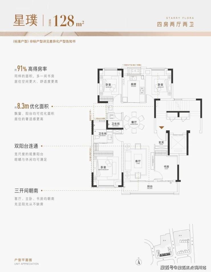 84㎡可随意切换为1/2/3房,还能拥有大横厅。128㎡还可以4房变3房,拥有豪宅同款大套房。
