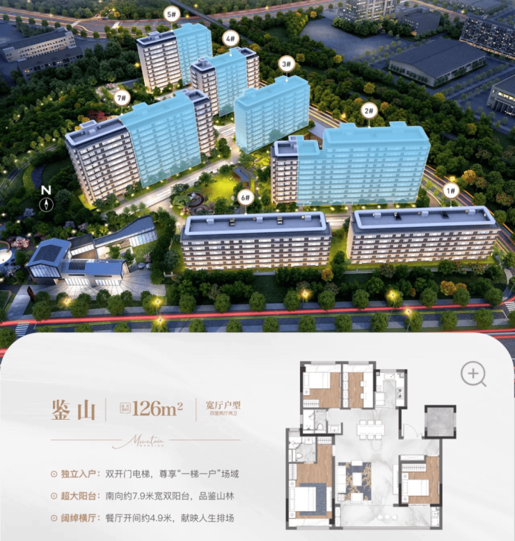 双开门电梯,独立入户,约4.5米面宽极致大边厅,直面自然山体风景,约5.9米宽瞰景双阳台,丰盈多面生活,南向三卧室,主卧私享飘窗,双次卧共享大阳台。