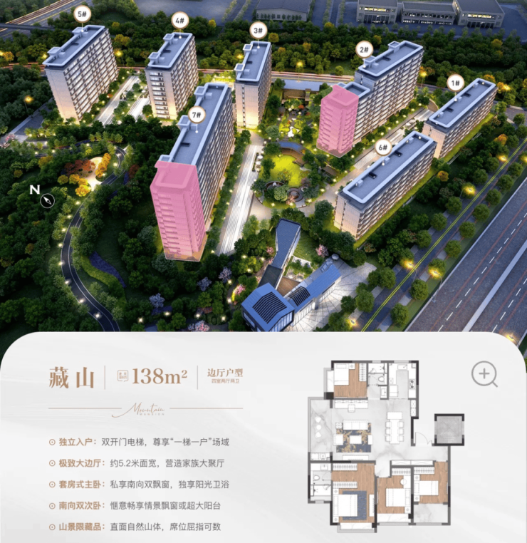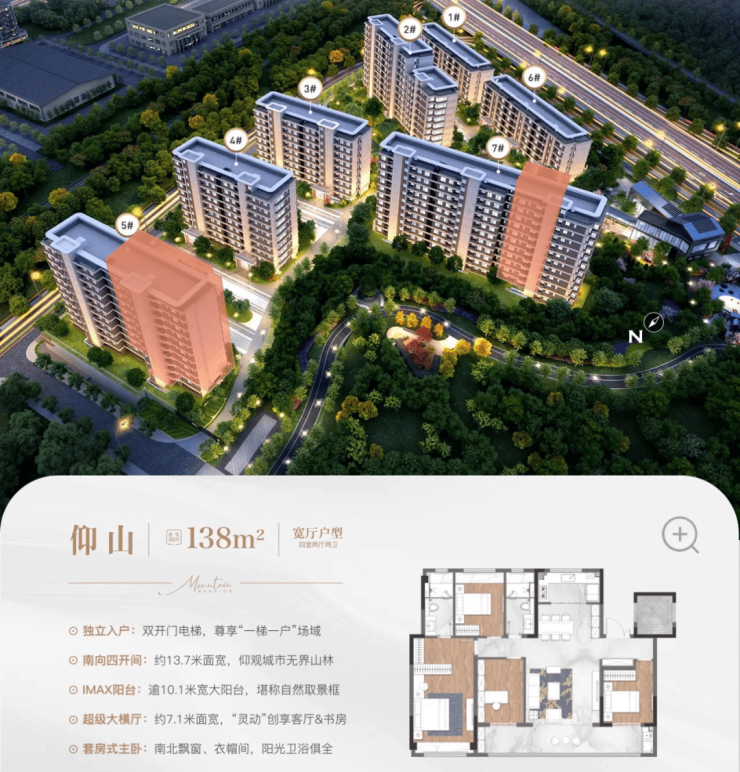 而且,这次还以1.8的容积率,打造全南京都十分稀缺的山景纯洋房,共7栋住宅,最低6层洋房,户型建面约97-138㎡。