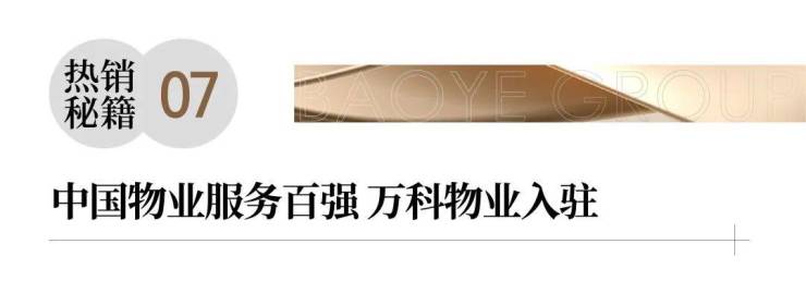 引入中国物业服务百强企业TOP1-万科物业,以五好社区服务 ,八大特色服务标准前置管家服务等物业服务体系标准, 打造全生命周期物业服务,为业主提供优质居住体验, 助力品质社区长线保值。
