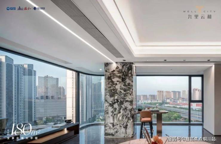 户型方面,设计了建面约105-180㎡八款精奢户型,其中建面约165㎡和180㎡产品突破行业标准,南向窗墙比高达约55%,用巨幕落地玻璃让窗外景观成为家中壁画。