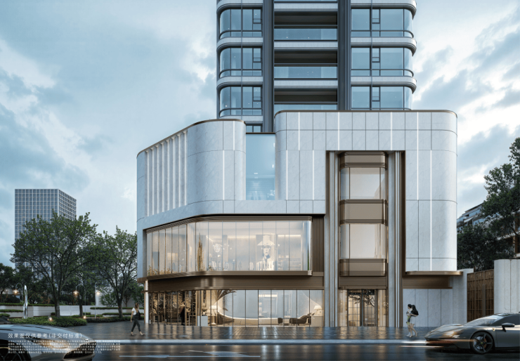 大华·静安年华将新古典与邬达克美学融合,借鉴了外滩华尔道夫、国际饭店等经典海派建筑的曲线、拱形、色彩等元素,并通过现代创新艺术材料,将之呈现在这座高层的外立面上。