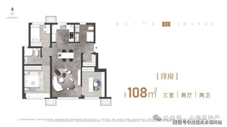 🔥E户型|小高105㎡三室两厅两卫: