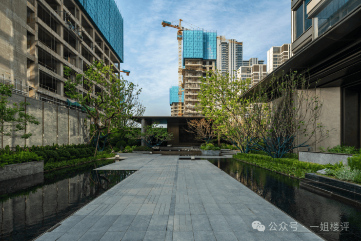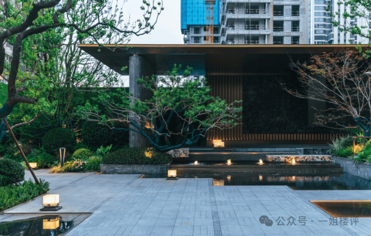 园林景观方面,项目内部有大量水景,层次感和设计感都很足。