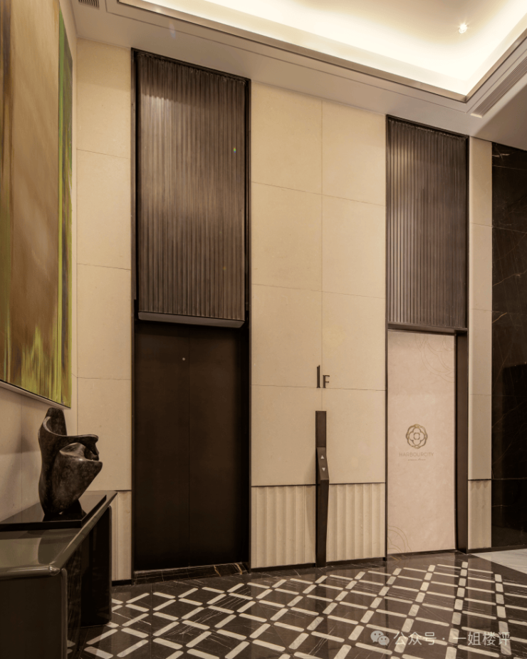 项目的两部电梯集中在一起,且都采用了双开门设计,这样一来,既能保证户户都有独立电梯前室,而且与那些独梯独户的设计相比,更有安全感,即使另一部电梯维修或者出现故障,还能有另一部电梯使用。