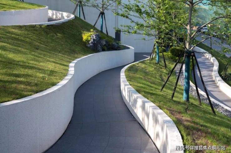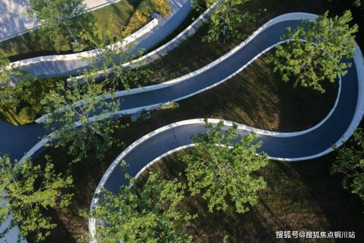 首先,摒弃精致的景观元素,通过最简单直接的方式呈现本案自然、清雅、克制的空间气质。大体量的绿化堆坡,是幕后森林山体的缩影,延续森林气息的同时,挑起游人前进的好奇心,给予无限遐想;其次,线性的活动区域,在保证通行功能的基础性上,将人为修饰的痕迹降至最低,仅提供缓步游览的景观空间,并展现一种“ 不打扰自然”的态度。最后,利用自然环境与纯粹人工景观的交错、融合,碰撞出的奇妙空间体验是无限的。