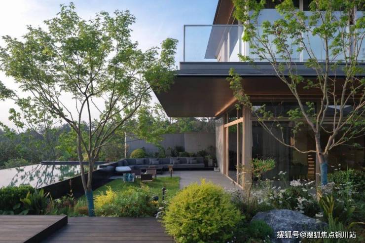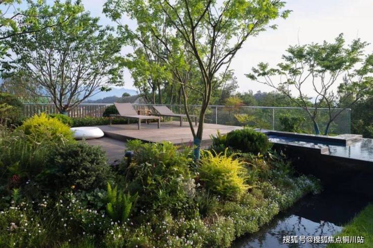 二、将绿地空间中心化,面积最大化。使其从视觉上成为山林在庭院的景观延伸。中心绿地是庭院的一抹留白,晨起瑜伽、午后闲茶、日暮赏花,它满足无限类型的活动。