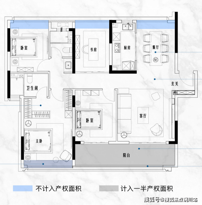 更重要的是,主卧、次卧、书房以及餐厅,都规划有可拓展空间,实际得房率竟然高达90%,相当于市面上160㎡大平层所拥有的空间体验!