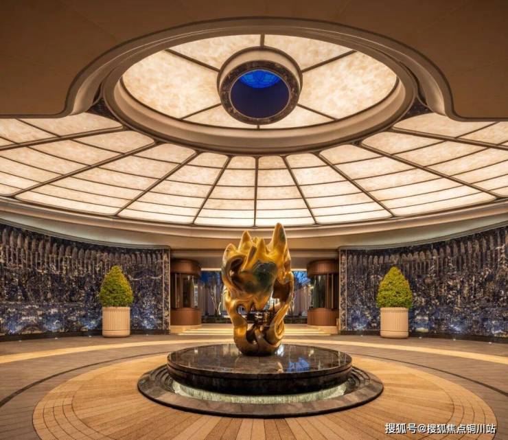 入口处矗立着国家级非遗传承人朱炳仁大师创作的《铸境湖山》,作品以独创的“熔铜技法”,将西湖山水、三潭印月与建筑线条熔铸一体,成为可触摸的杭州记忆;中轴园景里,也有一个朱炳仁大师的作品,在未来的生活中,成就岁月之美。