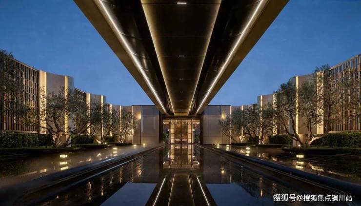建筑立面以龙山黑陶器型曲线,结合现代建筑风格,打造顶部精致塔冠、微弧倒角设计,形成强烈视觉符号;以沉香米黄主色调,搭配香槟金铝板,呈现精致典雅的美学风格,致敬中原文明。