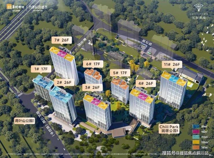 89㎡「璟曦」分布于1#楼(17F)和2#楼(26F),是润璟项目西侧沿荷叶山路方向的两栋楼,与113㎡「璟熙」同楼栋,梯户比为二梯四户。