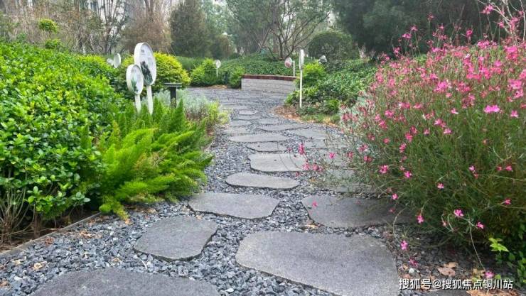 仔细看,才发现这条漫步道是由浪花白花岗岩铺设而成,而并非大部分楼盘选用的仿石砖。