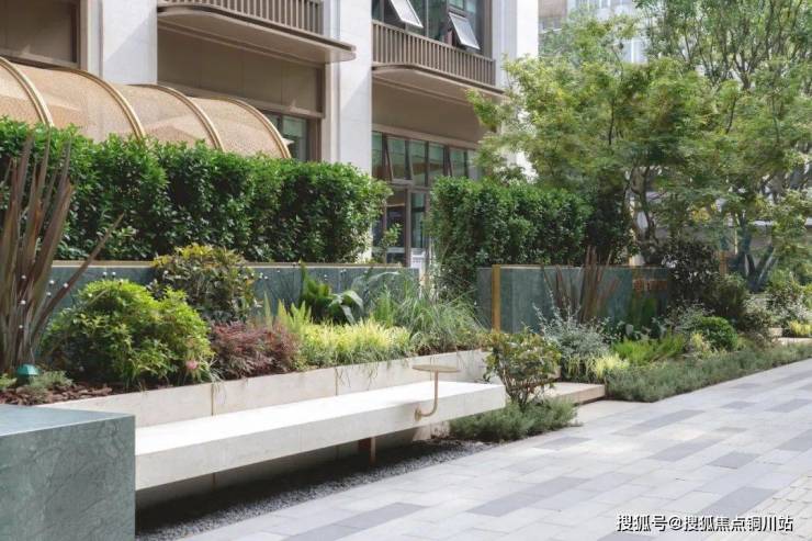 入则宁静,绿 洲花园以花园里的公馆为主题,植物是花园的主角。 素有“祥瑞”之称的榉树作为行道树威仪迎宾,单元入户两侧的紫薇寓意繁华富贵,丰富多彩的地被植物更是为整个花园铺上一层繁花似锦的基底,花园中心阳光草坪边缘层叠的水景之上是一棵造型飘逸的羽毛枫,成为整个花园的视觉焦点。