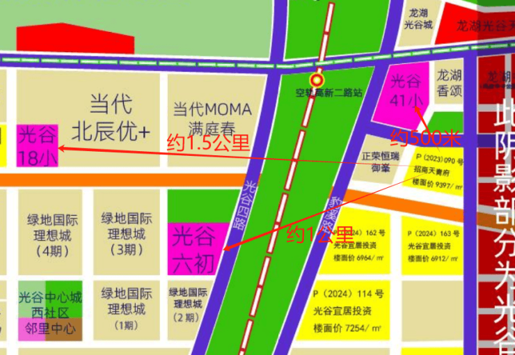 书包:书包配置高:距离光谷41小约500米、光谷18小直线距离约1.5公里、新城实验中学(六初)直线距离约1公里。项目所在片区内都是双书包的配置(18小+37小)。