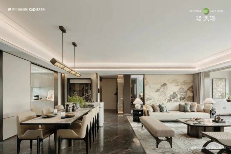 保利建发天瑞,采用不同以往的全新设计手法,打造繁奢东方美学会所——憩云堂,憩云堂注重空间布局与使用功能的完美结合,沙龙专区、禅意茶室、奢雅酒吧、VIP宴会厅……除家宅府邸之外的公共场域,都是当代国士纵横捭阖社交生活场的延伸。
