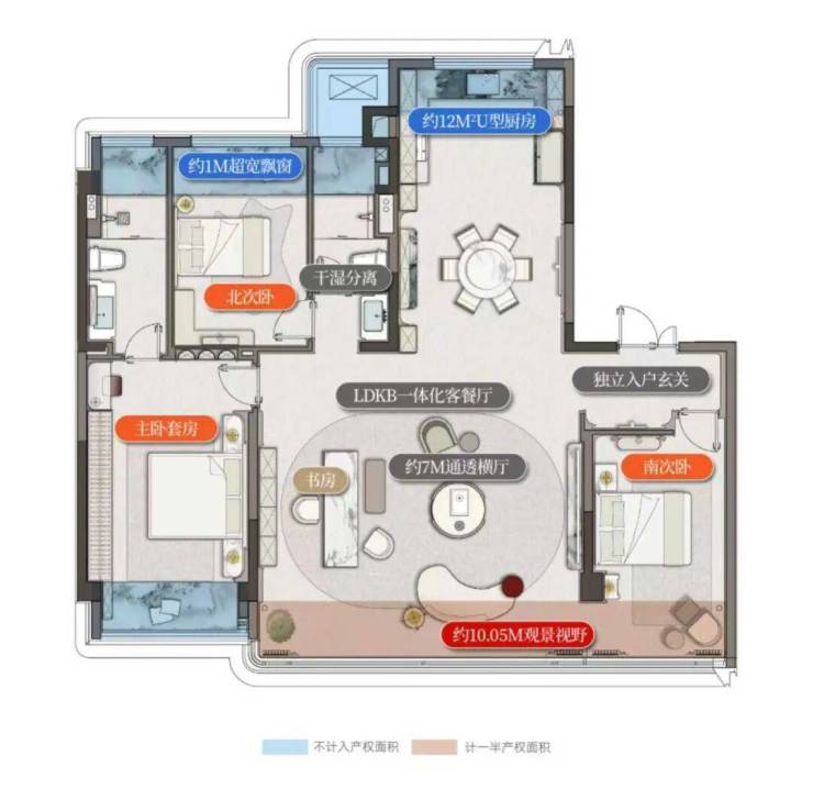 诚然,眼前的别墅户型已堪称典范,令人拍案叫绝。然而,琨悦廷的营造哲学远不止于此——其建面约143㎡洋房产品同样倾注了巨大的匠心,带来非凡的惊喜。