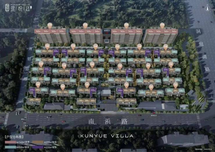 项目南侧为115席建筑面积约200㎡、220㎡、233㎡的纯粹联排别墅,北侧仅有4栋11层洋房,建筑面积约143㎡,规划289户高端低密社区。