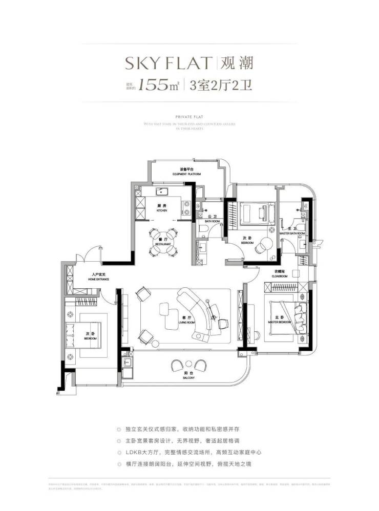 户型设计:项目推出了多样化的户型,建筑面积涵盖多个区间,从温馨的两居室到宽敞的四居室,能够满足不同家庭结构的居住需求。以部分主力户型为例,空间布局极为考究。客厅采用大开间设计,与餐厅、阳台流畅相连,形成一体化的公共活动空间,视野开阔,无论是举办家庭聚会还是招待亲朋好友,都能轻松容纳,尽显大气风范。卧室注重私密性与舒适性的打造,套房式主卧设计配备独立卫生间、衣帽间,部分户型还带有景观阳台,让业主在休息之余能够尽情欣赏窗外的美景,享受惬意的私人时光。例如,部分大户型的主卧套房面积宽敞,独立衣帽间空间充足,能够满足业主大量衣物收纳的需求;卫生间采用干湿分离设计,配备高品质的卫浴设施,为业主带来舒适便捷的使用体验。同时,户型设计注重空间的灵动性与可变性,部分户型可根据业主需求进行灵活改造,满足业主个性化的生活方式。