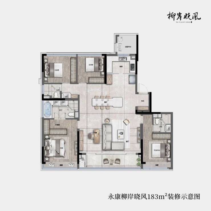 柳岸晓风现房组团「溪心印」入市,为永康塔尖带来了再次入席的机会。建面约183㎡户型打造四房三卫格局,南向开间超14米,客厅呈现全景落地玻璃,餐客厅面积达约50方,融合超大采光及景观视野,匹配永康塔尖圈层的极致追求。