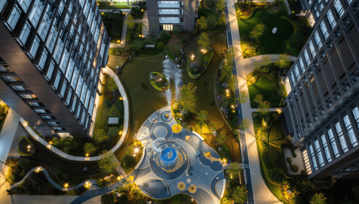 建筑是品质的彰显,社区则是情感的纽带。柳岸晓风钻石光感立面SUPER FLAT城市封面,创造极具未来感的永康圆心地标美学。在生活体验上,柳岸晓风则以「晓风荟」不断链接社区温情