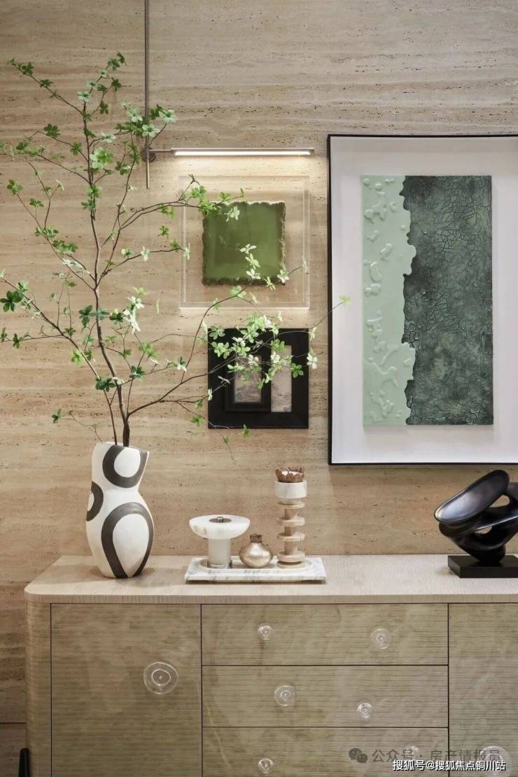 社区依临平山脉走势,整体北高南低。景观结合宋画中的山石、花木等元素,融入传统坊巷理念,抬地地形营造出淡然内敛的游园体验。
