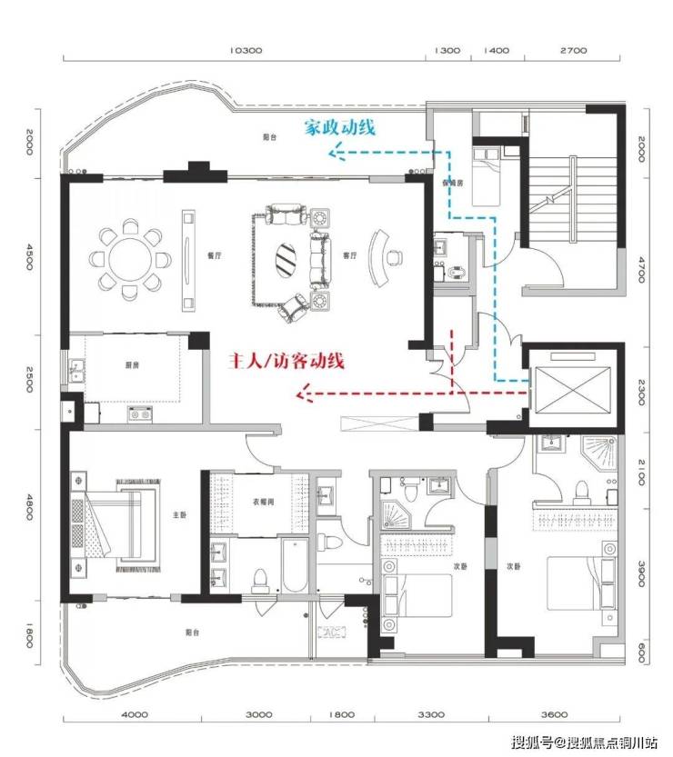 这个约240平的大平层,拥有3个南向的套房。其中,主卧套房带独立衣帽间、可放置双台盆的独立卫生间、还有一个可观景的南向弧形阳台。家里的成员,都能享受到独立而私密的生活空间。