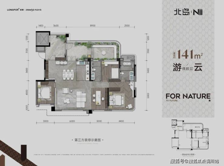 北岛N11的户型,率先革新的就是,总面积减少的情况下,做「更能打」的四代宅。主要供给两个面积段:建面约141㎡和建面约179㎡,各自因奇偶层变化,产生花园和室内结构的些微变动。