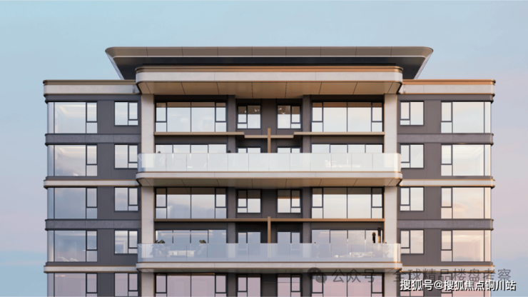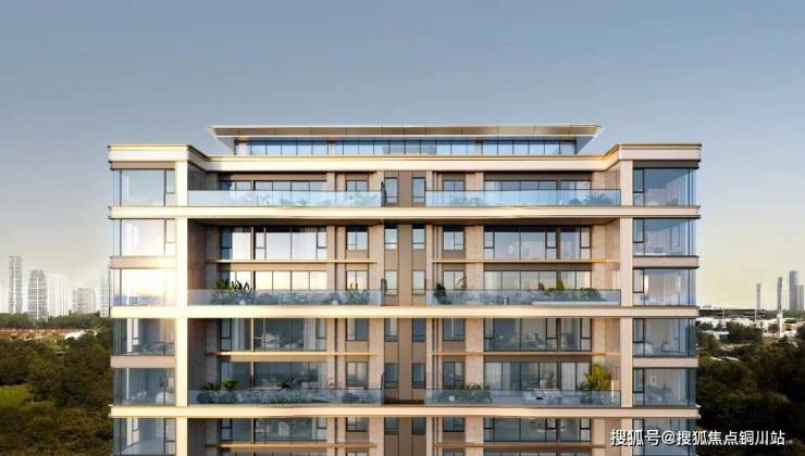 一面是「直屏」,脱胎于云河颂,但空中花园与房间在同一平面上,更加精练。银色铝板一圈圈勾勒出建筑的线条,香槟金再点缀其中,建筑一体两面、各有千秋。