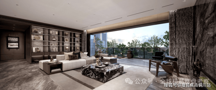 北岛N11的建筑四角都被转角圆弧落地玻璃包裹。四角晶莹,这种珠宝盒的艳光四射感,带来的是,落地长窗后的主卧套,享受到270度转角、更长面宽的双向采光。