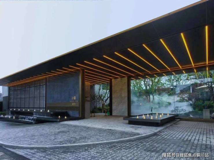铺满黑金沙石材的涌泉水景,成为界面里视觉的焦点,与两侧仪式跌水水景相呼应,动静之间既丰富了空间层次,又令这条归家路径充满礼序与仪式感。
