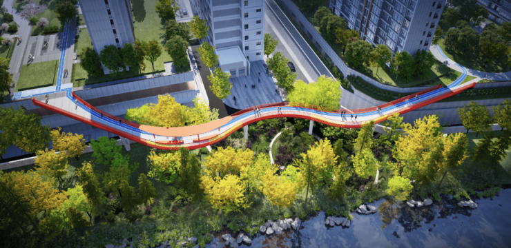 长约110米的“空中丝带”,架起了社区私享城市观景台的同时,也给生活更添自然意趣。