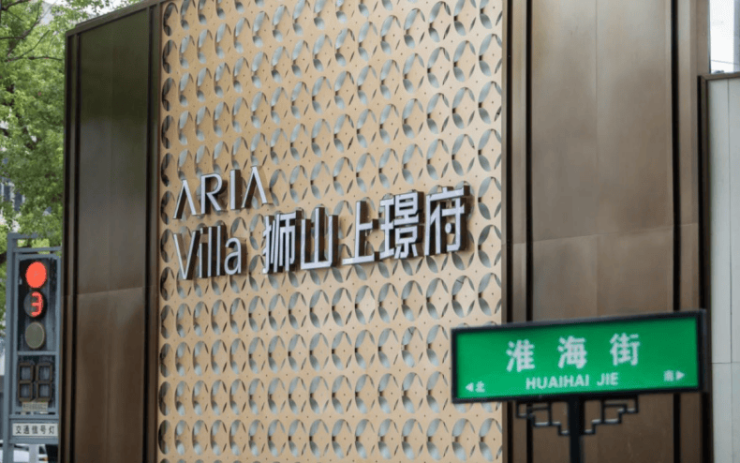 不同于以往简单的项目展示,新围挡以“院藏狮山+私藏合院”为核心主题,传递出低密社区的静谧感——浓荫掩映下的建筑轮廓、庭院里的光影细节,隐约透露出项目对生活场景的打磨思路,而非单纯强调建筑本身。