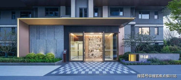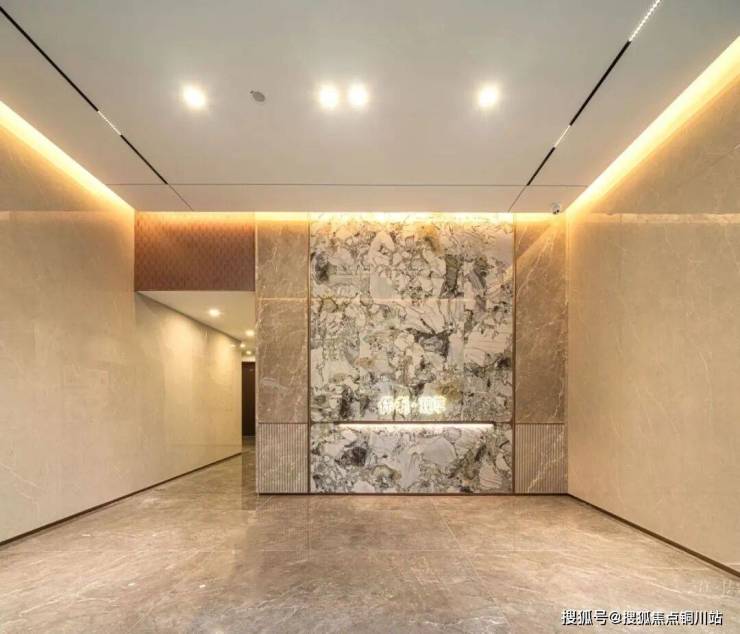 精装大堂内,冷翡翠岩板配金属不锈钢线条,双侧石材与圆弧造型相融。5.1米面宽搭配 3.2米挑高,格局方正通透。入户门为整面金属设计,不锈钢门套门楣配暗纹,精装门牌尽显气派。