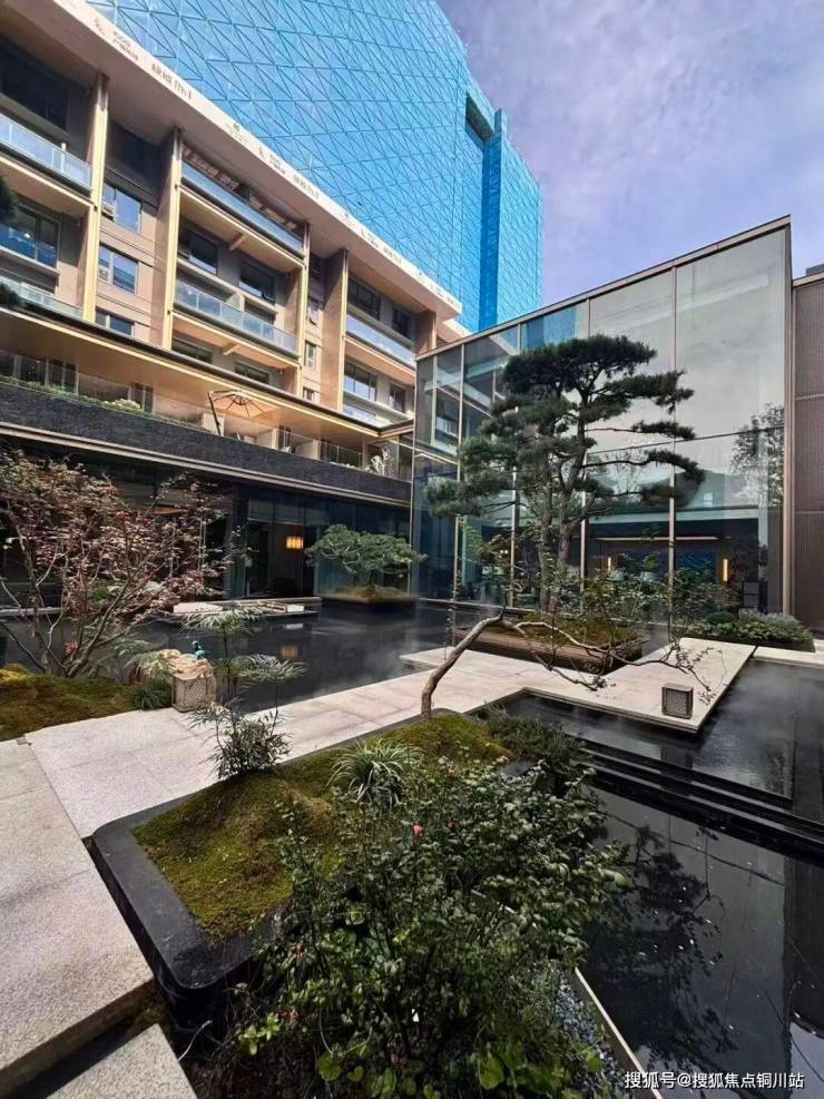 目前这家楼盘已经部分实景呈现,感觉还是不错的!小区内打造了极具禅意的中式园林景观,黑灰色的水景与形态雅致的松树、错落的山石、缤纷的绿植相映成趣!