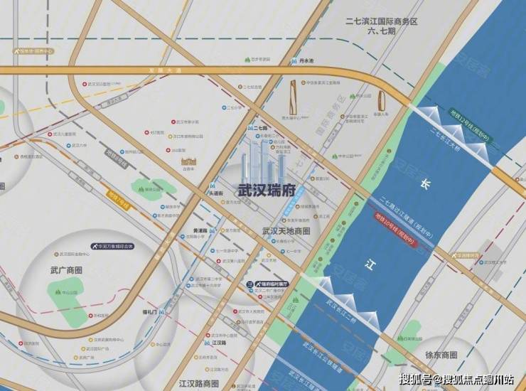 区位:武汉瑞府位于解放大道与头道街交汇处,在楼市划分中属于二七滨江核心区,行政划分属于江岸区,环线位置在二环内,内环边。