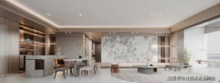 如此灵活、强大且极具仪式感的空间动线,串联起所有的功能空间,在保证空间与视线开放与通达的基础上,营造出了超大尺度的奢侈感,形成了一个极具自由、温暖、私密性的住宅生活空间,并以一程尊荣的归家礼仪,订制武汉塔尖人群专属的生活标签。