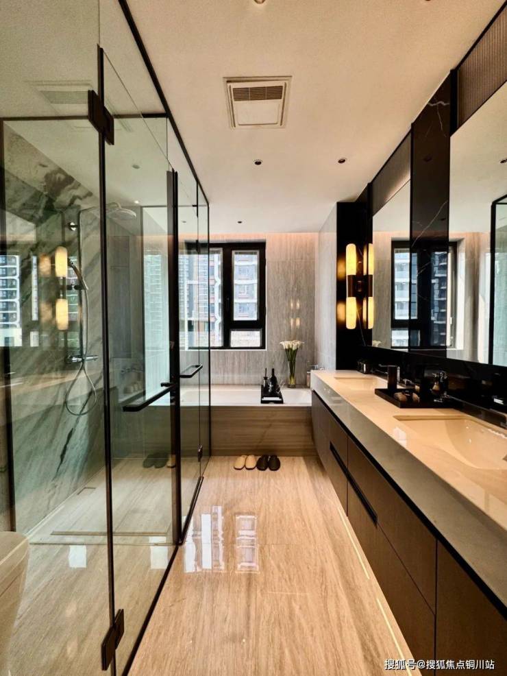 两个次卧自带内卫,主卧带有超大进深,配备全景飘窗+双独立衣帽间+奢华内卫。